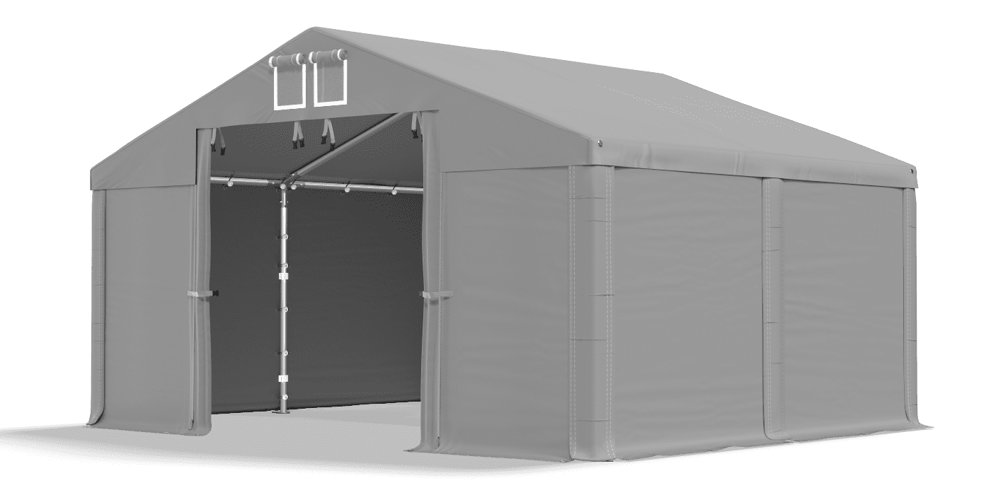 Plná plachta vyrobená zo silných a trvanlivých PVC chráni tovar uložený v skladovacom stane. Oplachovanie je vodotesné, pevné a odolné voči UV žiareniu. V hale stanu môžeme skladovať stavebné materiály, suroviny, športové vybavenie a dokonca aj vozidlá. Zastrešenie nemá žiadne okná, a preto chráni obsah garážového stanu pred očami okoloidúcich. Plarpaulín má systém rýchlej zmeny dĺžky Multi-size.
