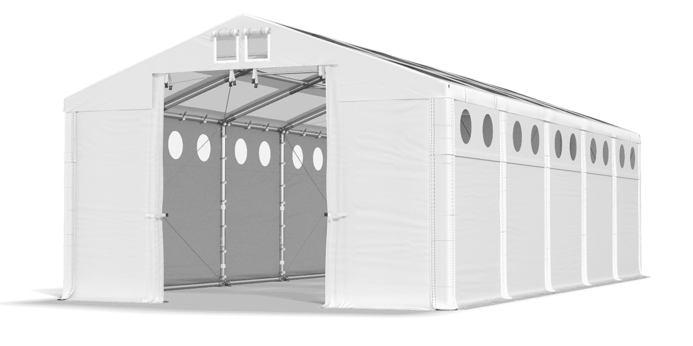 Ohýbanie je vybavené priehľadnou strechou a malými osvetľovacími oknami. Okrúhle okná sú umiestnené v hornej časti bočných stien garážového stanu. Vďaka tomu sa dovnútra dostane veľa denného svetla, ale obsah strechy je pre okoloidúci neviditeľný. Oplachovanie je vyrobené z PVC s vysokou hmotnosťou. Je odolný voči UV žiareniu a vlhkosti, a preto môžeme v skladovacom stane ukladať vozidlá, športové vybavenie, nábytok a komerčný tovar. Oplachovanie bolo vybavené systémom ľahkej zmeny dĺžky Multi-size.