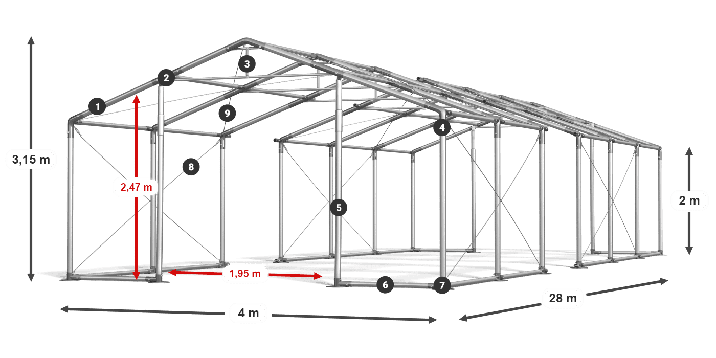 Silná plachta je vyrobená z PVC s vysokou hmotnosťou. Má estetické okná z farebného skla, ktoré poskytujú veľa denného svetla. Elegantné opláštenie sa používa v párty, gastronomických stanoch a obchodných stanoch. Vodotesná a UV -rezistentná plachta chráni stoly a bufety a pre hostí poskytuje suchý a tienistý priestor. Stan s oknami z farebného skla je tiež vynikajúci záhradný altánok.