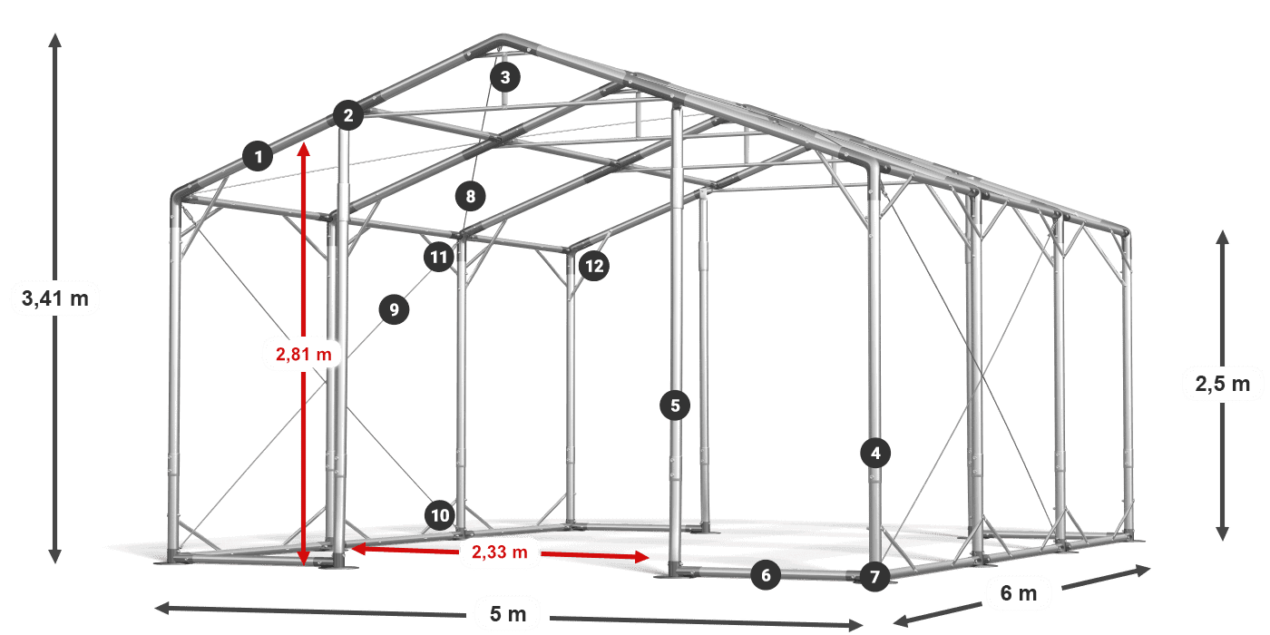 Výšky úložných a párty stanov je možné rýchlo meniť vďaka modulárnej konštrukcii, ktorá umožňuje zdvihnutie stanu o 0,5 m alebo 1 m. Najnižšia možná výška bočnej steny je 2m a najvyššia je 4m.
