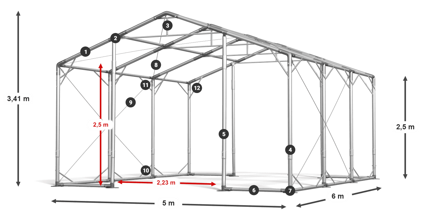 Výšky úložných a párty stanov je možné rýchlo meniť vďaka modulárnej konštrukcii, ktorá umožňuje zdvihnutie stanu o 0,5 m alebo 1 m. Najnižšia možná výška bočnej steny je 2m a najvyššia je 4m.
