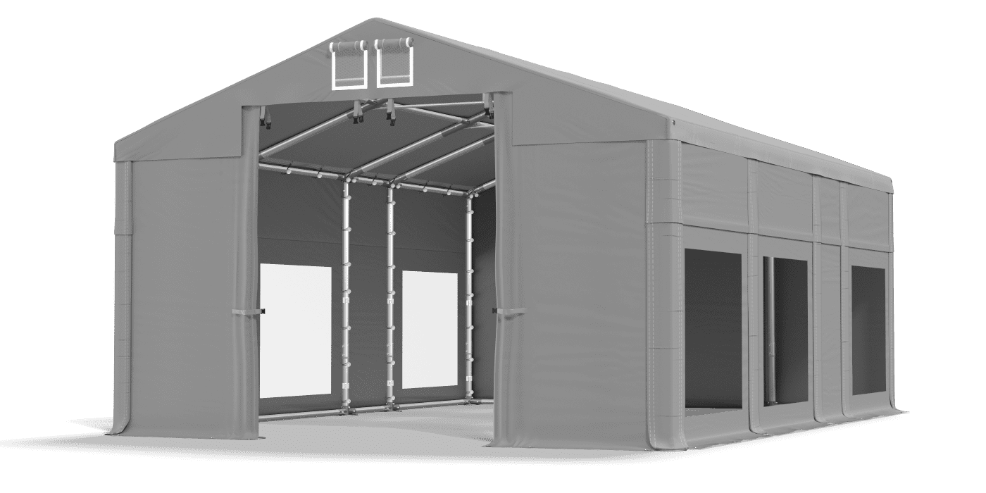 Výšky úložných a párty stanov je možné rýchlo meniť vďaka modulárnej konštrukcii, ktorá umožňuje zdvihnutie stanu o 0,5 m alebo 1 m. Najnižšia možná výška bočnej steny je 2m a najvyššia je 4m.