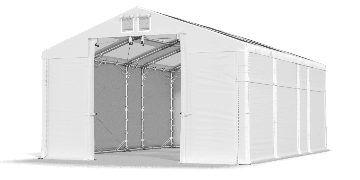 Oplachovanie má plné bočné steny a priehľadnú strechu. Vďaka tomu je interiér skladového stanu úplne osvetlený a zároveň neviditeľný pre okolostojacich. Plarka je vyrobená zo silných PVC, čo je odolné voči vlhkosti a UV žiareniu. Je to vynikajúci garážový stan pre vozidlá, športové vybavenie a záhradný nábytok. Pod strechou je možné vykonať prácu súvisiace so montážou, segregáciou alebo výrobou. Oplachovanie bolo vybavené systémom ľahkej zmeny dĺžky Multi-size.