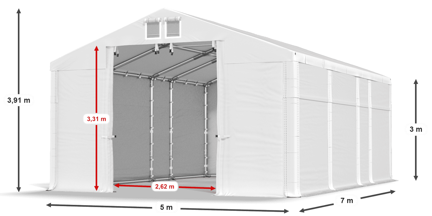 Úplná a odolná plachta od PVC poskytuje bezpečný priestor na ukladanie tovaru, garačné vozidlá a skladovanie plodín. Pod strechou môžeme udržiavať stavebné materiály, suroviny, záhradný nábytok a športové vybavenie. Oplachovanie je vodotesné, pevné a odolné voči UV žiareniu. Bočné steny sa navzájom dokonale priľnú a nemajú okná, a preto je interiér úložného stanu neviditeľný zvonku. Plarka je vybavená systémom ľahkej zmeny dĺžky Multi-size.