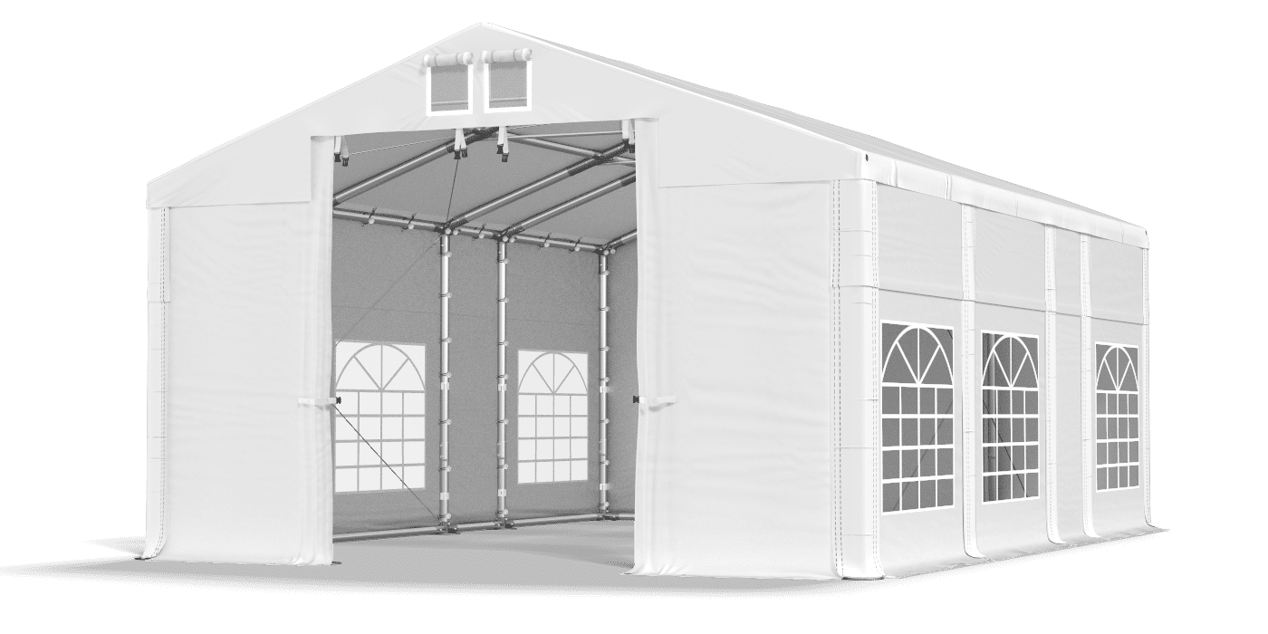Tento typ stanu je postavený so segmentovou strechou a stenami vybavenými veľkými vitrážovými oknami. Je to skvelá voľba, keď často organizujeme akcie pre iný počet hostí. Potom môžeme postaviť menší stan alebo pridať ďalšie segmenty a vytvoriť tak väčší priestor.