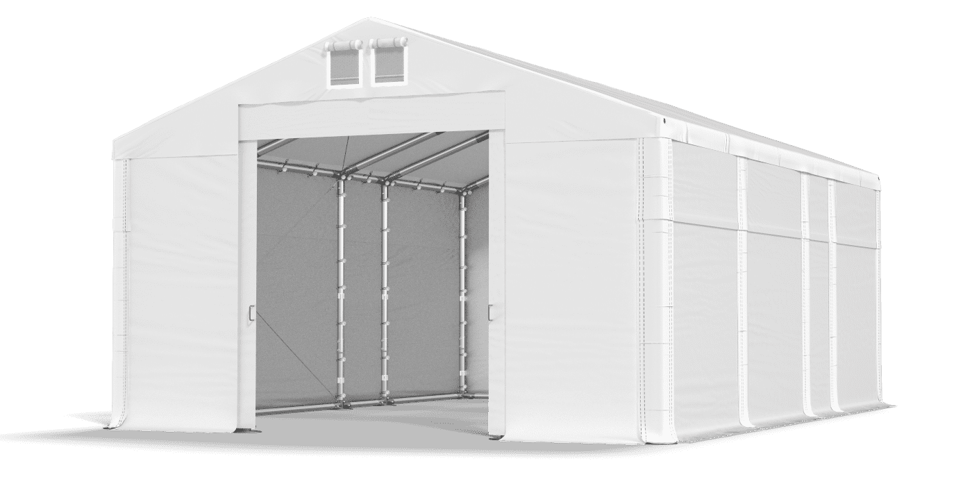 Plná plachta vyrobená zo silných a trvanlivých PVC chráni tovar uložený v skladovacom stane. Oplachovanie je vodotesné, pevné a odolné voči UV žiareniu. V hale stanu môžeme skladovať stavebné materiály, suroviny, športové vybavenie a dokonca aj vozidlá. Zastrešenie nemá žiadne okná, a preto chráni obsah garážového stanu pred očami okoloidúcich. Plarpaulín má systém rýchlej zmeny dĺžky Multi-size.