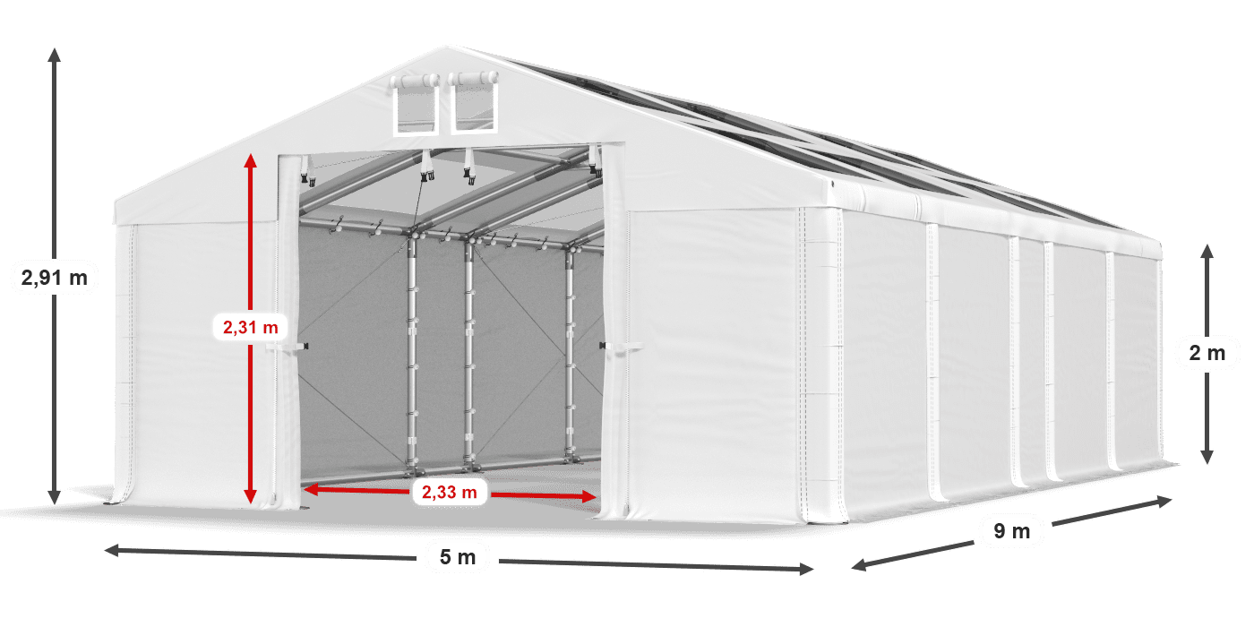 Výšky úložných a párty stanov je možné rýchlo meniť vďaka modulárnej konštrukcii, ktorá umožňuje zdvihnutie stanu o 0,5 m alebo 1 m. Najnižšia možná výška bočnej steny je 2m a najvyššia je 4m.