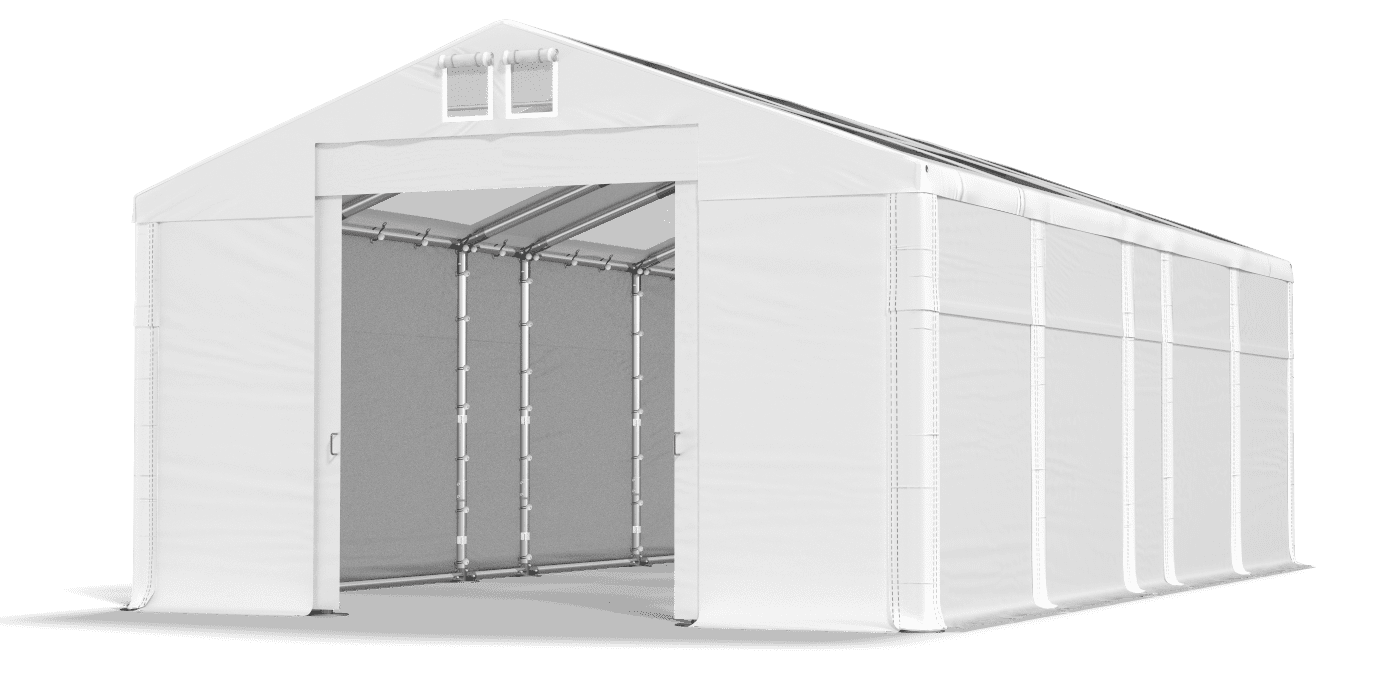 Oplachovanie má plné bočné steny a priehľadnú strechu. Vďaka tomu je interiér skladového stanu úplne osvetlený a zároveň neviditeľný pre okolostojacich. Plarka je vyrobená zo silných PVC, čo je odolné voči vlhkosti a UV žiareniu. Je to vynikajúci garážový stan pre vozidlá, športové vybavenie a záhradný nábytok. Pod strechou je možné vykonať prácu súvisiace so montážou, segregáciou alebo výrobou. Oplachovanie bolo vybavené systémom ľahkej zmeny dĺžky Multi-size.