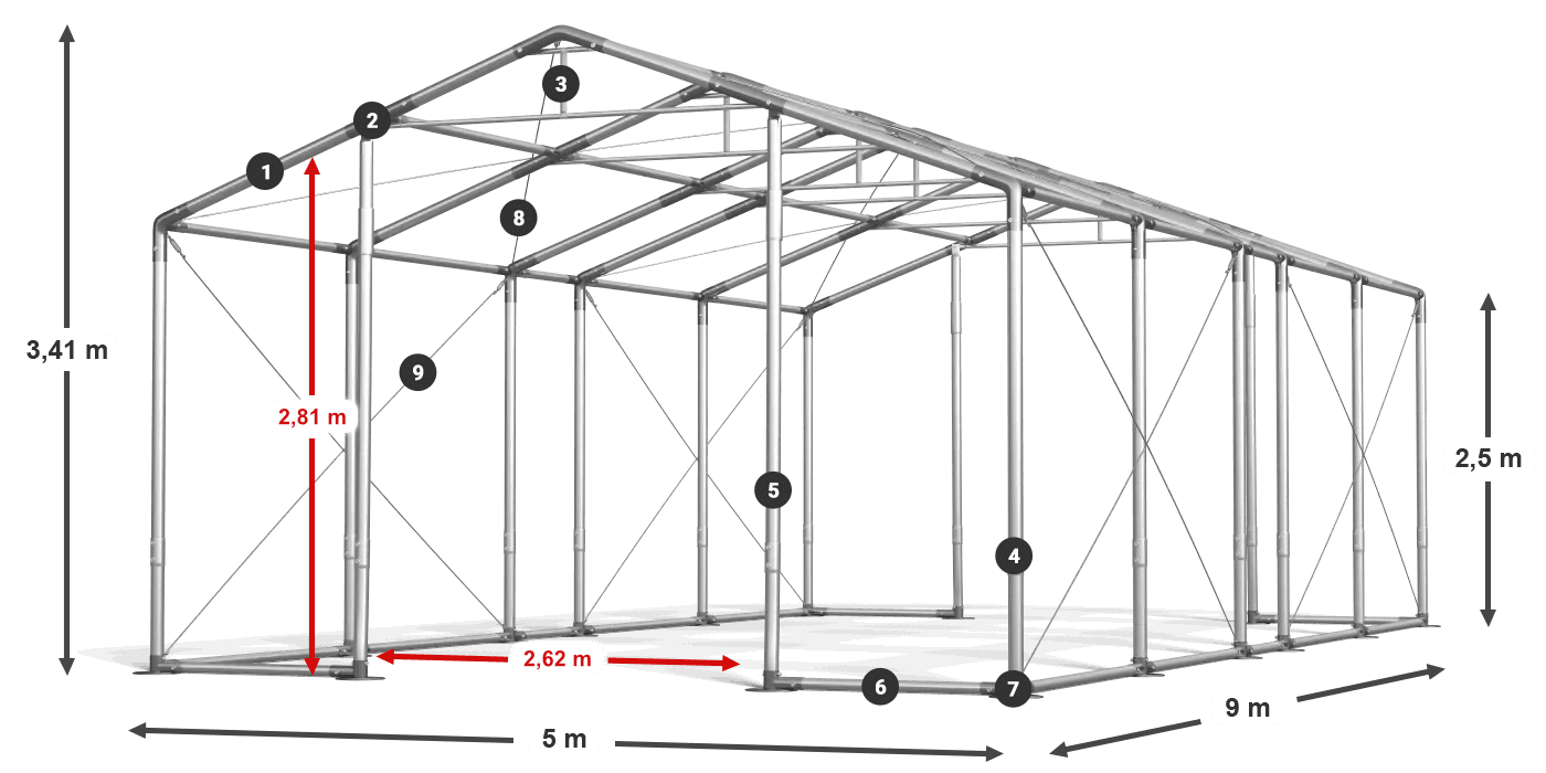 Silné opláštenie s osvetľujúcimi oknami umožňuje garáž vozidiel, skladovanie tovaru a vykonávanie prác týkajúcich sa montáže. Tvrdý -to -terpaulinný placht vyrobený z PVC je vodotesný, tesný a odolný voči UV žiareniu. V suchom a zatienenom skladovom stane môžeme skladovať plodiny, stavebné materiály a suroviny. Okná okrúhle osvetlenie poskytujú prirodzené svetlo. Plarpaulín má systém rýchlej zmeny dĺžky Multi-size.
