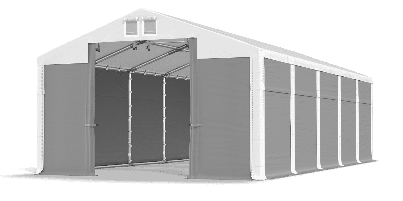 Úplná a odolná plachta od PVC poskytuje bezpečný priestor na ukladanie tovaru, garačné vozidlá a skladovanie plodín. Pod strechou môžeme udržiavať stavebné materiály, suroviny, záhradný nábytok a športové vybavenie. Oplachovanie je vodotesné, pevné a odolné voči UV žiareniu. Bočné steny sa navzájom dokonale priľnú a nemajú okná, a preto je interiér úložného stanu neviditeľný zvonku. Plarka je vybavená systémom ľahkej zmeny dĺžky Multi-size.