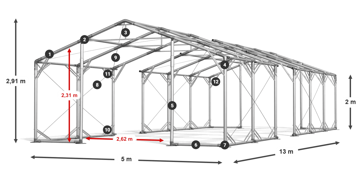 Na všetkých bočných stenách boli použité dodatočné horné a spodné priečne podpery. Vďaka nim je stan maximálne odolný voči silnému a nárazovému vetru. Je to najúčinnejší spôsob ochrany proti takýmto poveternostným vplyvom.