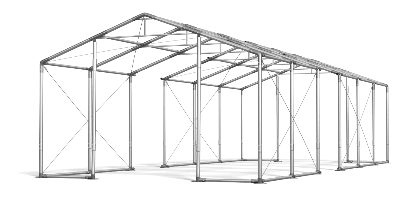 Strešný a bočný napínací systém pozostáva z hrubých oceľových lán s napínačmi. Výsledkom je extrémne odolná konštrukcia, ktorá sa nedeformuje a zostáva kompaktná počas celej doby používania.
