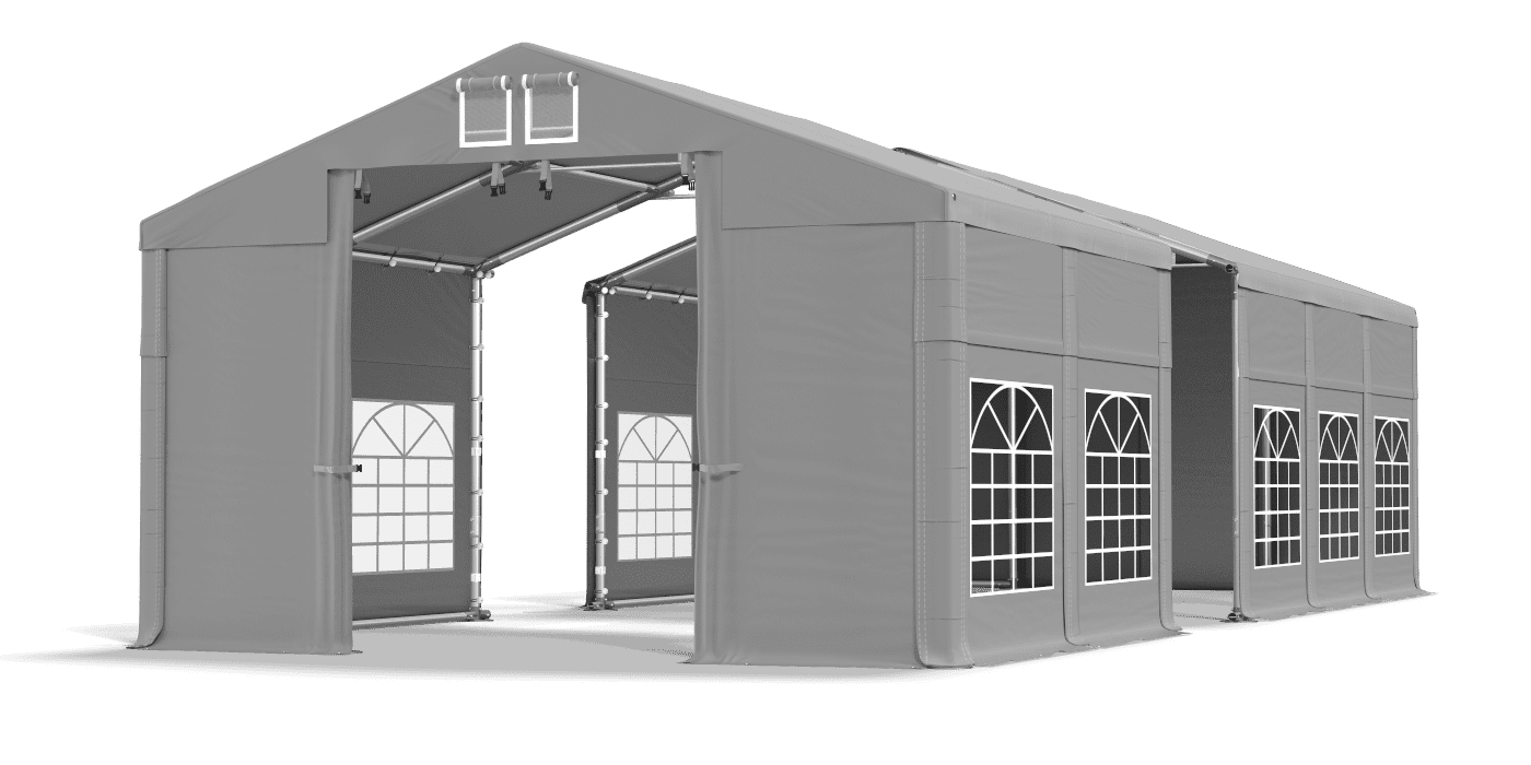 Silné opláštenie s oknami z farebného skla chráni stoly a bufety pred vlhkosťou a vetrom. Utesnená plachta od PVC je odolná voči UV žiareniu, a preto poskytuje suchý a tienistý priestor. V párty stanu môžeme organizovať rodinné večierky, mestské festivaly a spoločnosti spoločnosti. Je to tiež vynikajúci záhradný stan a komerčný stan. Elegantná plachta je vybavená systémom ľahkej zmeny dĺžky Multi-size.