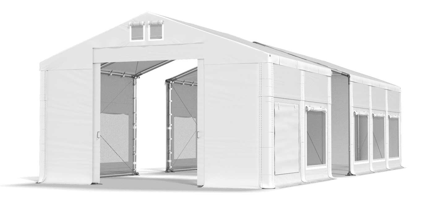Plarka, ktorá má veľké okná komárov, je mimoriadne vzdušná. Okrem toho chráni tabuľky a bufety pred lietajúcim hmyzom. Ohýbanie je vyrobené zo silného PVC, čo je odolné voči vlhkosti a UV žiareniu. Jedná sa o vynikajúci záhradný stan, ktorý je možné prispôsobiť počasiu pomocou znížených žalúzií. Počas vonkajších večierkov sa používajú aj stany s sieťou komárov, pretože zaisťujú prietok čerstvého vzduchu v večierku.