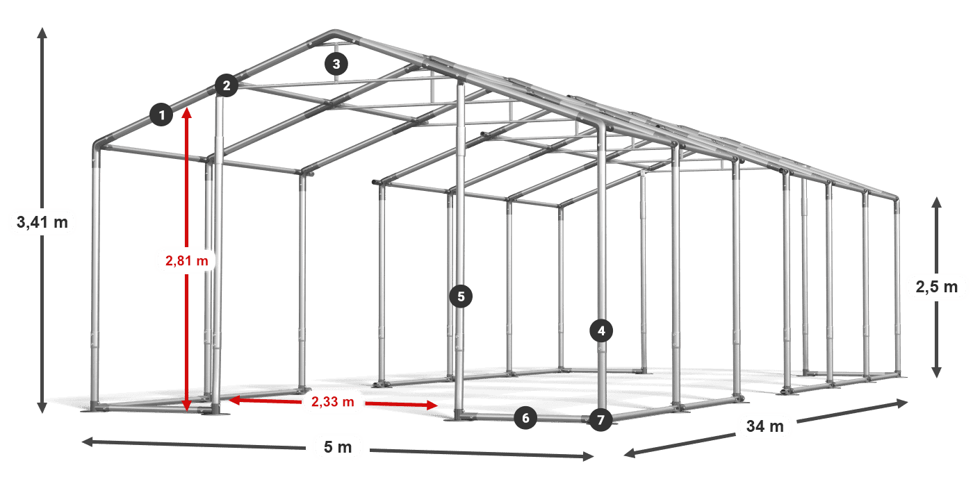 Plarka s okrúhlymi oknami s okrúhlym osvetlením poskytuje prirodzené svetlo vo vnútri stanu. Je vyrobený z PVC s vysokou hmotnosťou. Opláchanie je odolné voči vlhkosti a UV žiareniu, a preto poskytuje suchý a tienistý priestor na ukladanie tovaru, plodín, kŕmení a stavebných materiálov. Je to tiež vynikajúci garážový stan pre vozidlá, poľnohospodárske stroje a športové vybavenie. Interiér skladového stanu nie je viditeľný pre okoloidúci, pretože okná sú umiestnené v hornej časti bočných stien.