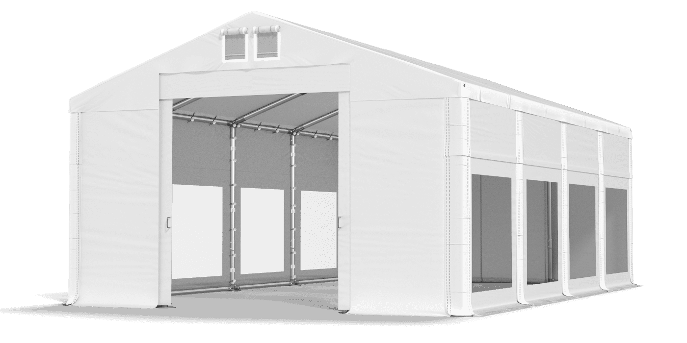 Bočná stena je vyrobená z hrubej plachty PVC cca. 580 g/m2. Vďaka priehľadnej bočnej stene pôsobí stan esteticky. Skvele sa hodí ako komerčný, výstavný alebo párty stan