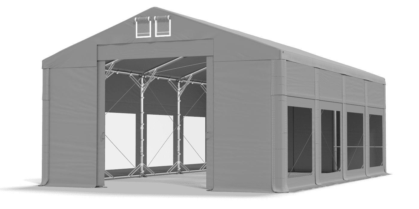 Na všetkých bočných stenách boli použité dodatočné horné a spodné priečne podpery. Vďaka nim je stan maximálne odolný voči silnému a nárazovému vetru. Je to najúčinnejší spôsob ochrany proti takýmto poveternostným vplyvom.