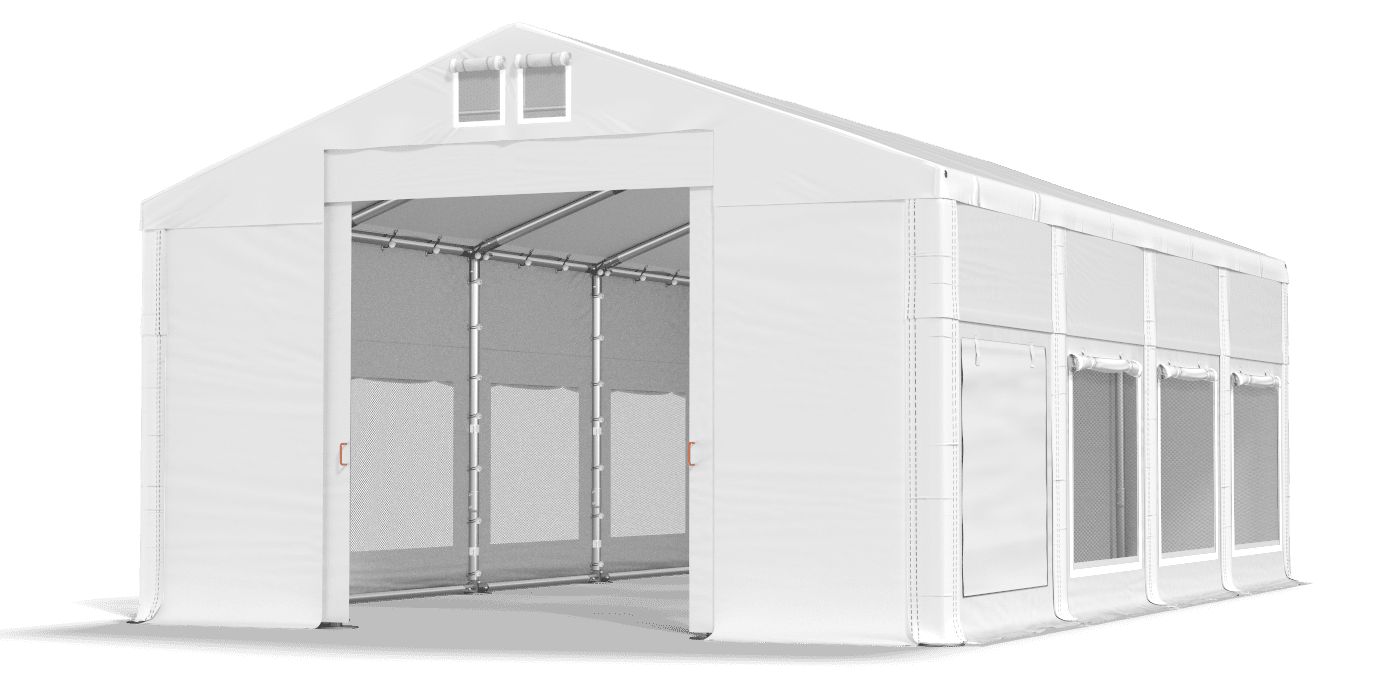 Každá zo stien je vybavená zabudovanou vzduchopriepustnou sieťovinou. Nad každým z týchto sieťových okien je po celej dĺžke roleta so suchým zipsom. Tieto suché zipsy po rozložení rolety dokonale priľnú k stene a vytvoria uzavretý celok. Stany s takýmito stenami je preto možné využiť dvoma spôsobmi – ako párty alebo záhradné stany, s umiestnením stolov a stoličiek dovnútra a ako skladovacie priestory.