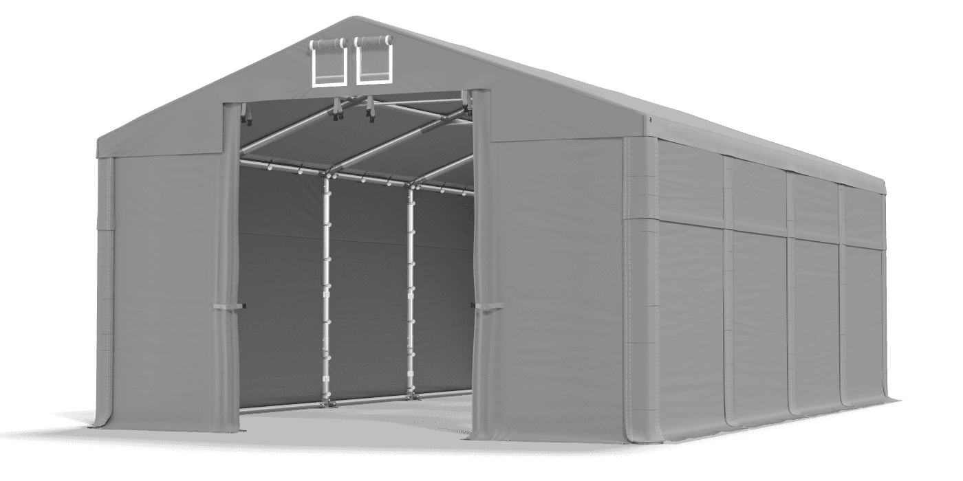 Úplná a odolná plachta od PVC poskytuje bezpečný priestor na ukladanie tovaru, garačné vozidlá a skladovanie plodín. Pod strechou môžeme udržiavať stavebné materiály, suroviny, záhradný nábytok a športové vybavenie. Oplachovanie je vodotesné, pevné a odolné voči UV žiareniu. Bočné steny sa navzájom dokonale priľnú a nemajú okná, a preto je interiér úložného stanu neviditeľný zvonku. Plarka je vybavená systémom ľahkej zmeny dĺžky Multi-size.
