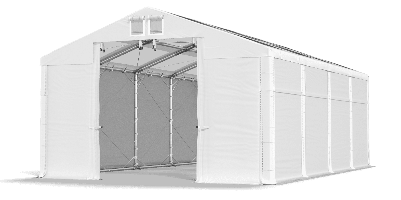 Plarka má plné steny a priehľadnú strechu. Zaručuje dokonalé osvetlenie interiéru skladového stanu a zabraňuje nahliadnutiu do jeho interiéru pre okolostojacich. Je to vynikajúci priemyselný stan na vykonávanie prác týkajúcich sa výroby, opravy, segregácie a montáže. V garážovom stane môžeme skladovať komerčné tovary, vozidlá, športové vybavenie a poľnohospodárske stroje. Oplachovanie bolo vybavené systémom ľahkej zmeny dĺžky Multi-size.