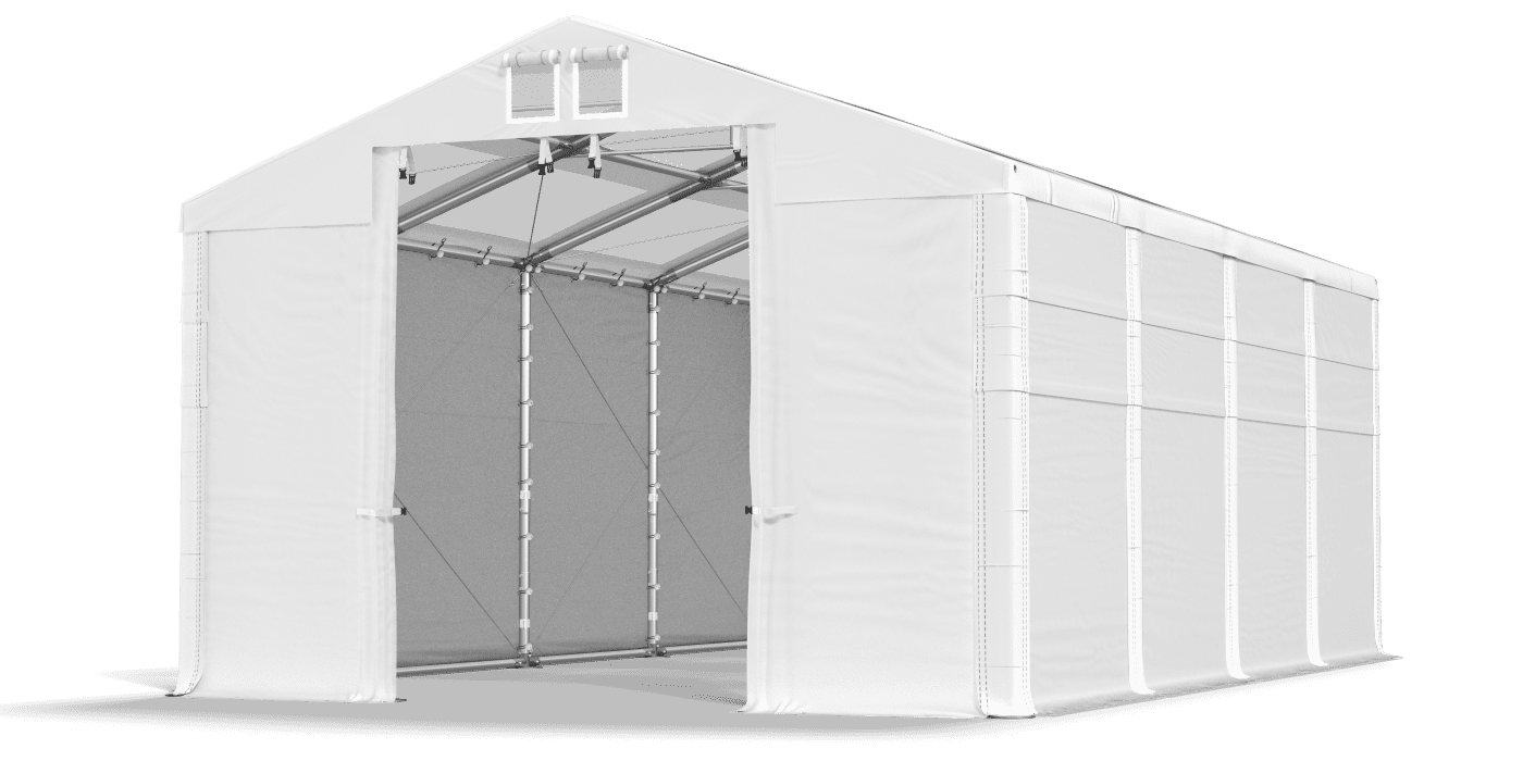 Plarka má plné steny a priehľadnú strechu. Zaručuje dokonalé osvetlenie interiéru skladového stanu a zabraňuje nahliadnutiu do jeho interiéru pre okolostojacich. Je to vynikajúci priemyselný stan na vykonávanie prác týkajúcich sa výroby, opravy, segregácie a montáže. V garážovom stane môžeme skladovať komerčné tovary, vozidlá, športové vybavenie a poľnohospodárske stroje. Oplachovanie bolo vybavené systémom ľahkej zmeny dĺžky Multi-size.