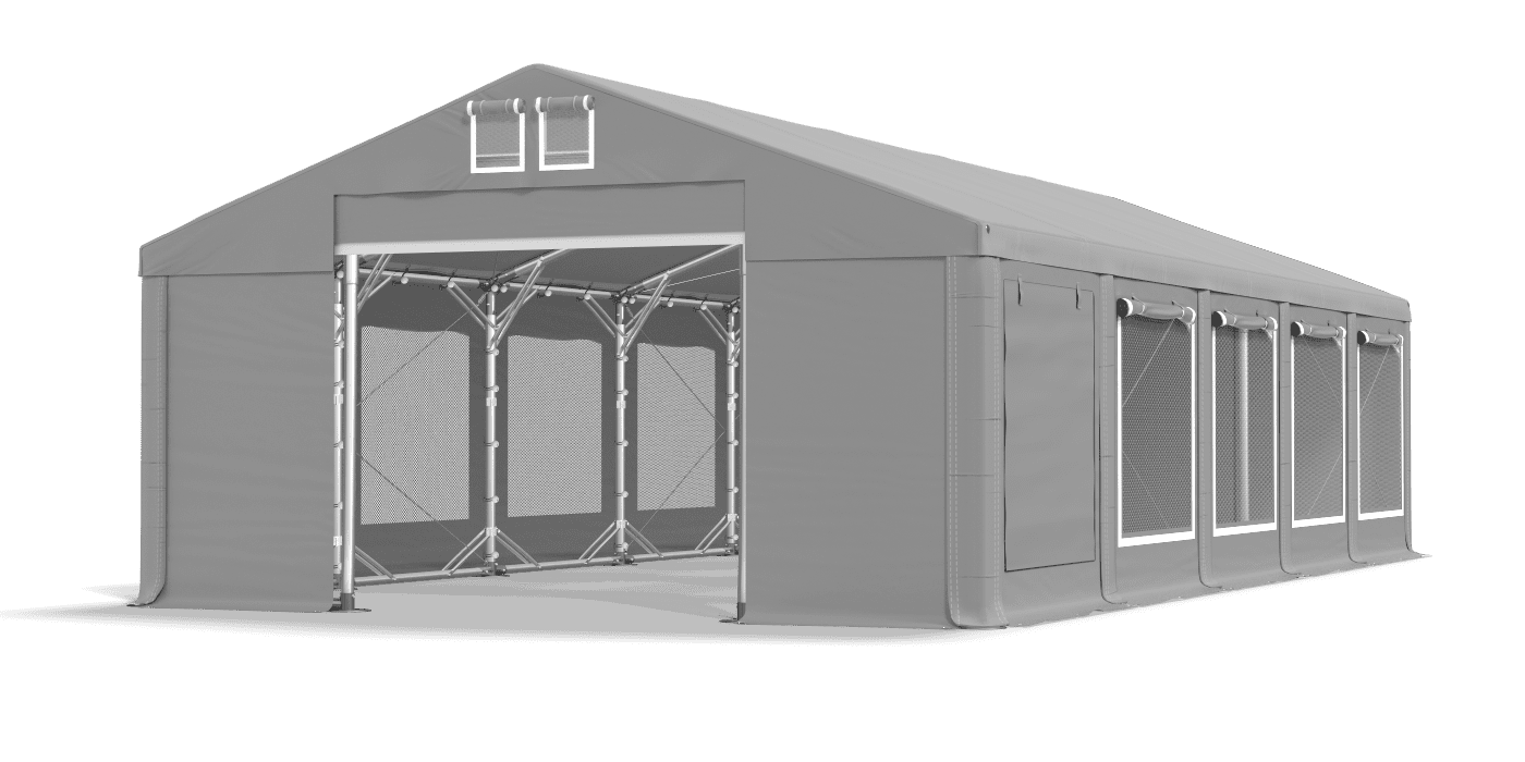 Plarka, ktorá má veľké okná komárov, je mimoriadne vzdušná. Okrem toho chráni tabuľky a bufety pred lietajúcim hmyzom. Ohýbanie je vyrobené zo silného PVC, čo je odolné voči vlhkosti a UV žiareniu. Jedná sa o vynikajúci záhradný stan, ktorý je možné prispôsobiť počasiu pomocou znížených žalúzií. Počas vonkajších večierkov sa používajú aj stany s sieťou komárov, pretože zaisťujú prietok čerstvého vzduchu v večierku.