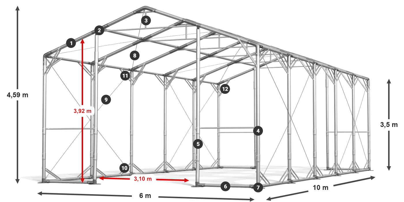 Na všetkých bočných stenách boli použité dodatočné horné a spodné priečne podpery. Vďaka nim je stan maximálne odolný voči silnému a nárazovému vetru. Je to najúčinnejší spôsob ochrany proti takýmto poveternostným vplyvom.