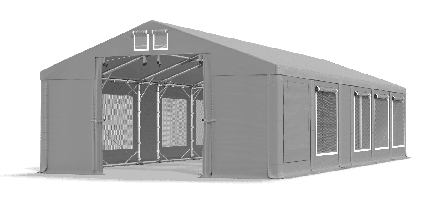 Plarka, ktorá má veľké okná komárov, je mimoriadne vzdušná. Okrem toho chráni tabuľky a bufety pred lietajúcim hmyzom. Ohýbanie je vyrobené zo silného PVC, čo je odolné voči vlhkosti a UV žiareniu. Jedná sa o vynikajúci záhradný stan, ktorý je možné prispôsobiť počasiu pomocou znížených žalúzií. Počas vonkajších večierkov sa používajú aj stany s sieťou komárov, pretože zaisťujú prietok čerstvého vzduchu v večierku.