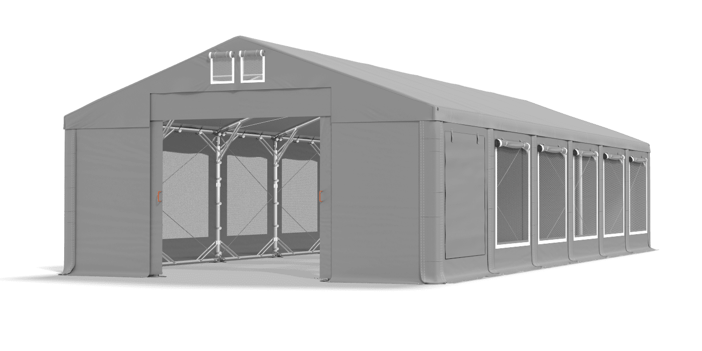Každá zo stien je vybavená zabudovanou vzduchopriepustnou sieťovinou. Nad každým z týchto sieťových okien je po celej dĺžke roleta so suchým zipsom. Tieto suché zipsy po rozložení rolety dokonale priľnú k stene a vytvoria uzavretý celok. Stany s takýmito stenami je preto možné využiť dvoma spôsobmi – ako párty alebo záhradné stany, s umiestnením stolov a stoličiek dovnútra a ako skladovacie priestory.