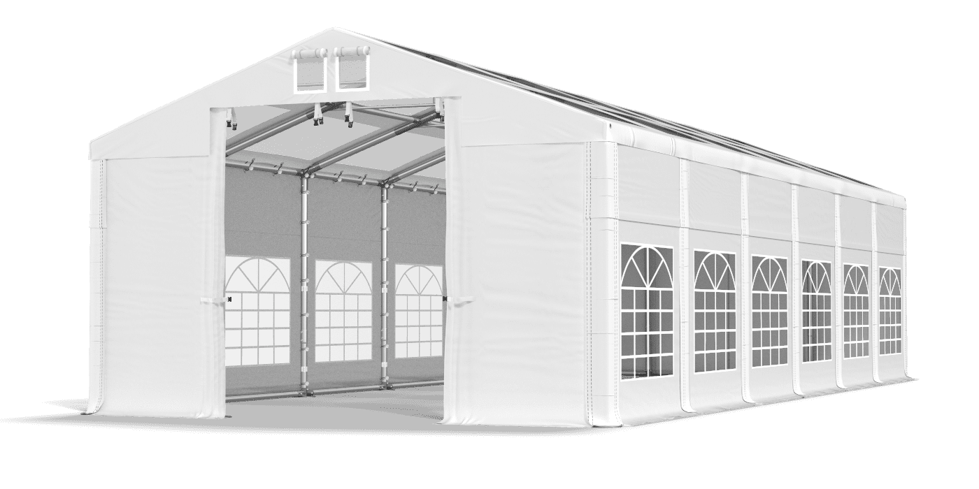 Bočná stena je vyrobená z hrubej plachty PVC cca. 500 g/m2 a veľké vitráže. Výška základnej steny je 2m. Vďaka unikátnemu dizajnu je možné jednoducho zdvihnúť bočnú stenu o 0,5 m alebo 1 m. Vďaka oknám umiestneným na každom dvojmetrovom segmente pôsobí stan esteticky. Skvele sa hodí ako komerčný, výstavný alebo párty stan.