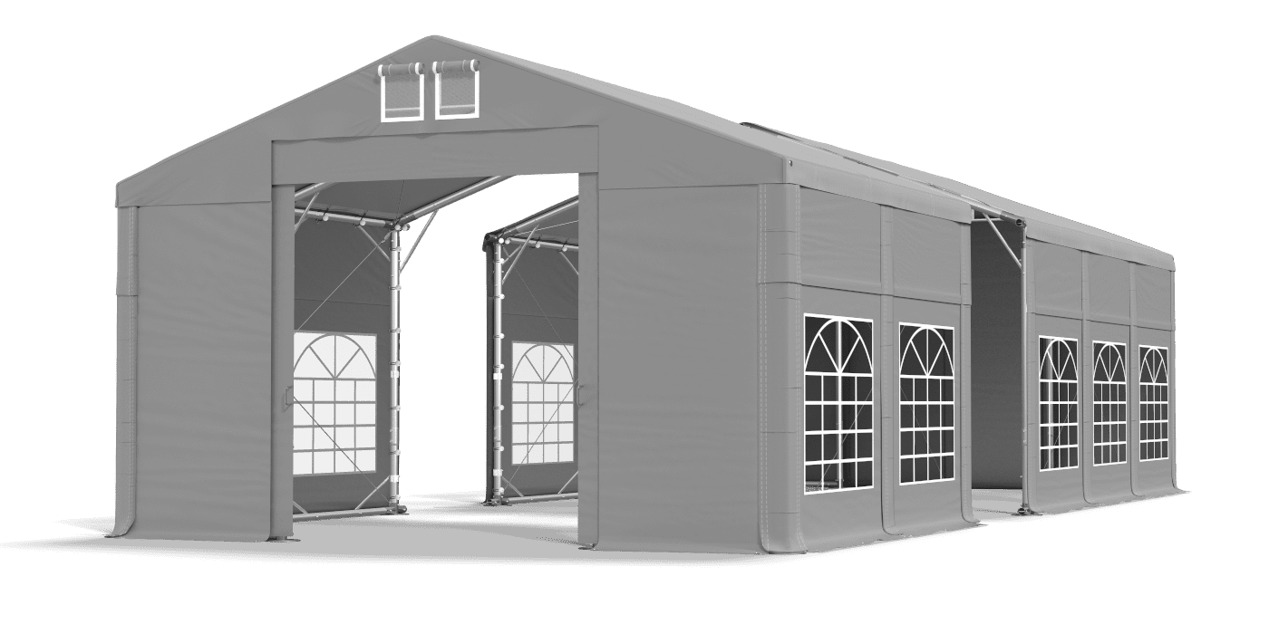 Výšky úložných a párty stanov je možné rýchlo meniť vďaka modulárnej konštrukcii, ktorá umožňuje zdvihnutie stanu o 0,5 m alebo 1 m. Najnižšia možná výška bočnej steny je 2m a najvyššia je 4m.