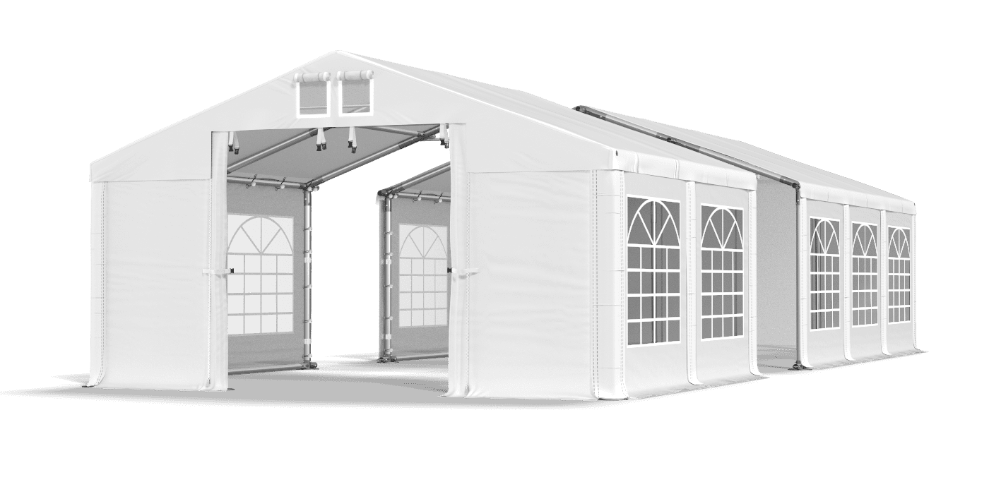 Silná plachta je vyrobená z PVC s vysokou hmotnosťou. Má estetické okná z farebného skla, ktoré poskytujú veľa denného svetla. Elegantné opláštenie sa používa v párty, gastronomických stanoch a obchodných stanoch. Vodotesná a UV -rezistentná plachta chráni stoly a bufety a pre hostí poskytuje suchý a tienistý priestor. Stan s oknami z farebného skla je tiež vynikajúci záhradný altánok.