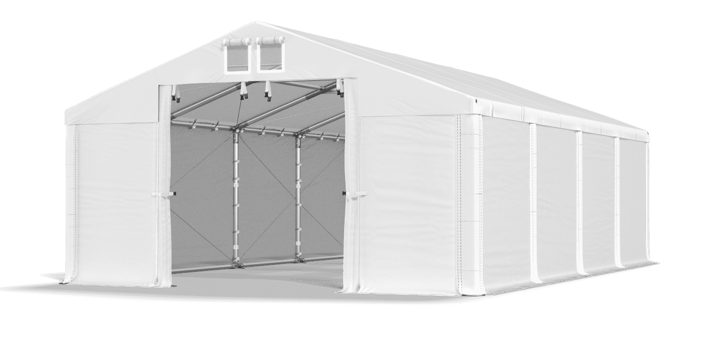 Úplná a odolná plachta od PVC poskytuje bezpečný priestor na ukladanie tovaru, garačné vozidlá a skladovanie plodín. Pod strechou môžeme udržiavať stavebné materiály, suroviny, záhradný nábytok a športové vybavenie. Oplachovanie je vodotesné, pevné a odolné voči UV žiareniu. Bočné steny sa navzájom dokonale priľnú a nemajú okná, a preto je interiér úložného stanu neviditeľný zvonku. Plarka je vybavená systémom ľahkej zmeny dĺžky Multi-size.