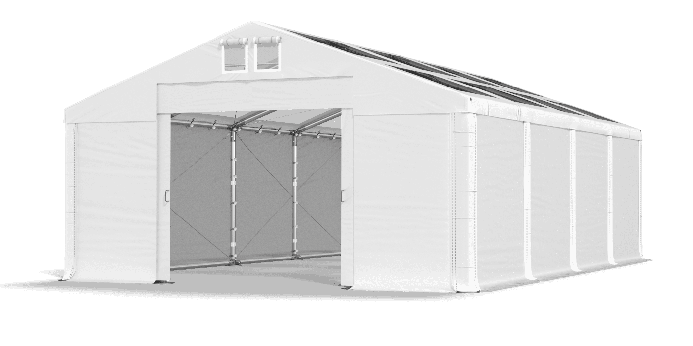 Plarka má plné steny a priehľadnú strechu. Zaručuje dokonalé osvetlenie interiéru skladového stanu a zabraňuje nahliadnutiu do jeho interiéru pre okolostojacich. Je to vynikajúci priemyselný stan na vykonávanie prác týkajúcich sa výroby, opravy, segregácie a montáže. V garážovom stane môžeme skladovať komerčné tovary, vozidlá, športové vybavenie a poľnohospodárske stroje. Oplachovanie bolo vybavené systémom ľahkej zmeny dĺžky Multi-size.