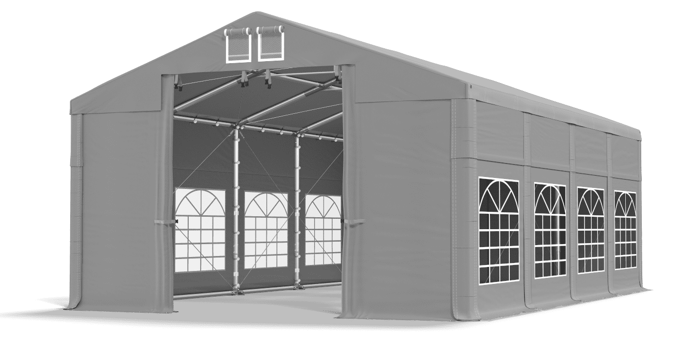Silné opláštenie s oknami z farebného skla chráni stoly a bufety pred vlhkosťou a vetrom. Utesnená plachta od PVC je odolná voči UV žiareniu, a preto poskytuje suchý a tienistý priestor. V párty stanu môžeme organizovať rodinné večierky, mestské festivaly a spoločnosti spoločnosti. Je to tiež vynikajúci záhradný stan a komerčný stan. Elegantná plachta je vybavená systémom ľahkej zmeny dĺžky Multi-size.