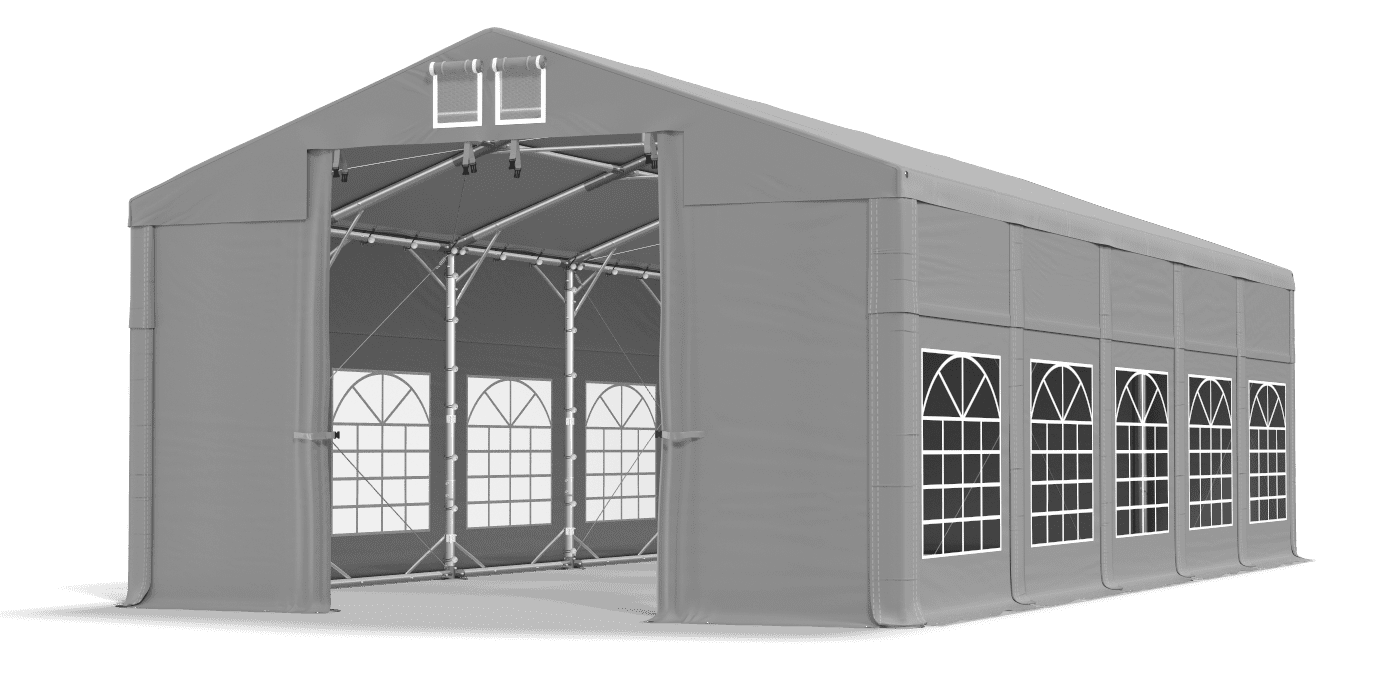 Tento typ stanu je postavený so segmentovou strechou a stenami vybavenými veľkými vitrážovými oknami. Je to skvelá voľba, keď často organizujeme akcie pre iný počet hostí. Potom môžeme postaviť menší stan alebo pridať ďalšie segmenty a vytvoriť tak väčší priestor.