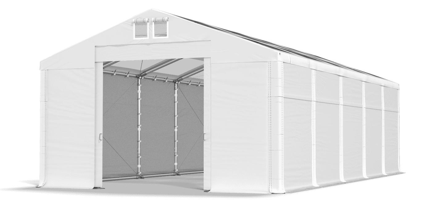 Plarka má plné steny a priehľadnú strechu. Zaručuje dokonalé osvetlenie interiéru skladového stanu a zabraňuje nahliadnutiu do jeho interiéru pre okolostojacich. Je to vynikajúci priemyselný stan na vykonávanie prác týkajúcich sa výroby, opravy, segregácie a montáže. V garážovom stane môžeme skladovať komerčné tovary, vozidlá, športové vybavenie a poľnohospodárske stroje. Oplachovanie bolo vybavené systémom ľahkej zmeny dĺžky Multi-size.