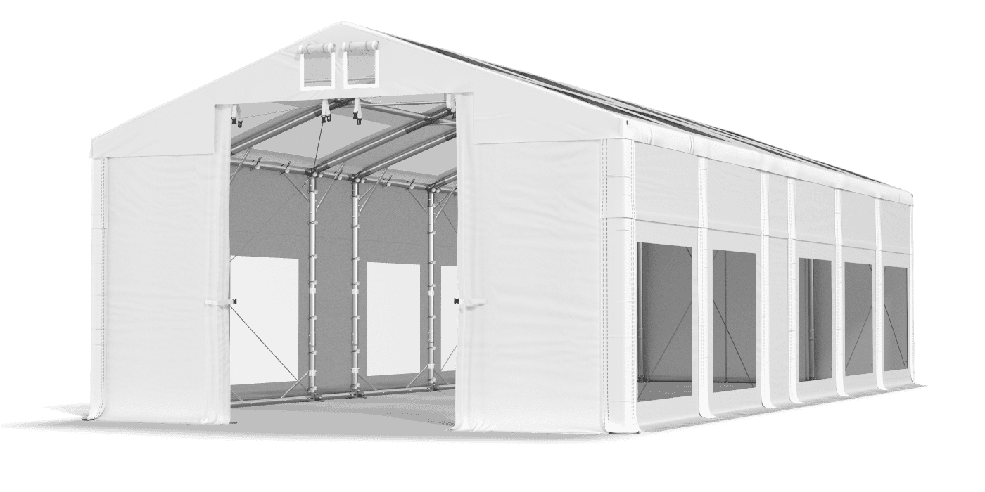Oplachovanie je vybavené priehľadnými stranami a strechou. Vďaka tomu zaručuje úplné osvetlenie stanu udalosti. Strecha sa dá použiť v obchode, pretože umožňuje estetické zobrazenie tovaru. Plarka je vyrobená z PVC s vysokou hmotnosťou. Vďaka tomu chráni stoly a bufety pred vetrom, vlhkosťou a vonkajším znečistením. Je to vynikajúci záhradný stan a výstavný stan. Oplachovanie bolo vybavené systémom ľahkej zmeny dĺžky Multi-size.