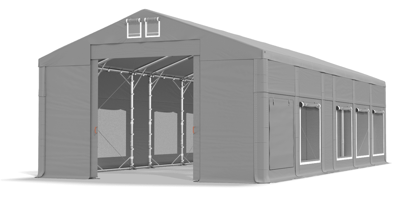 Plarka, ktorá má veľké okná komárov, je mimoriadne vzdušná. Okrem toho chráni tabuľky a bufety pred lietajúcim hmyzom. Ohýbanie je vyrobené zo silného PVC, čo je odolné voči vlhkosti a UV žiareniu. Jedná sa o vynikajúci záhradný stan, ktorý je možné prispôsobiť počasiu pomocou znížených žalúzií. Počas vonkajších večierkov sa používajú aj stany s sieťou komárov, pretože zaisťujú prietok čerstvého vzduchu v večierku.