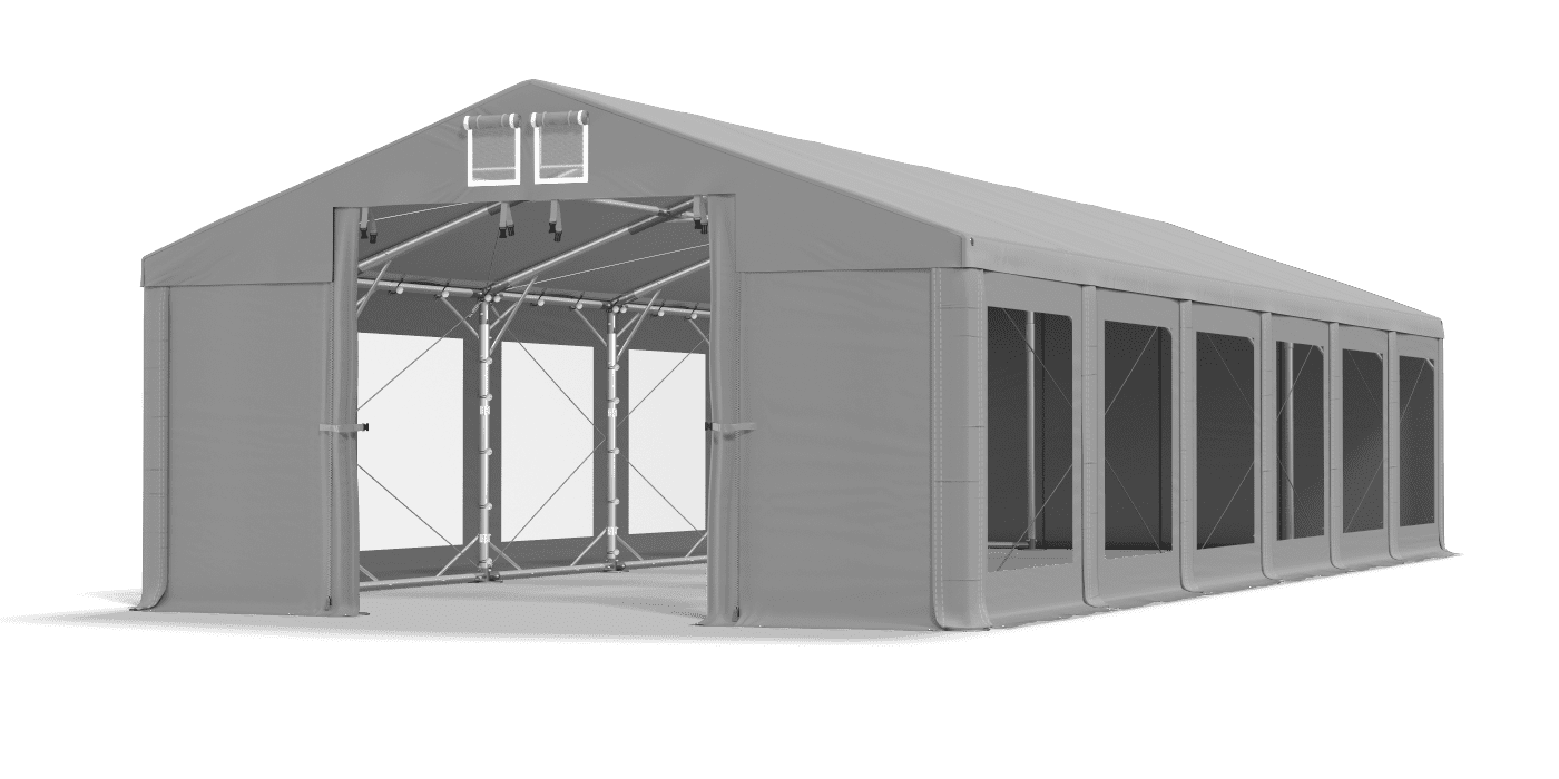 Výšky úložných a párty stanov je možné rýchlo meniť vďaka modulárnej konštrukcii, ktorá umožňuje zdvihnutie stanu o 0,5 m alebo 1 m. Najnižšia možná výška bočnej steny je 2m a najvyššia je 4m.