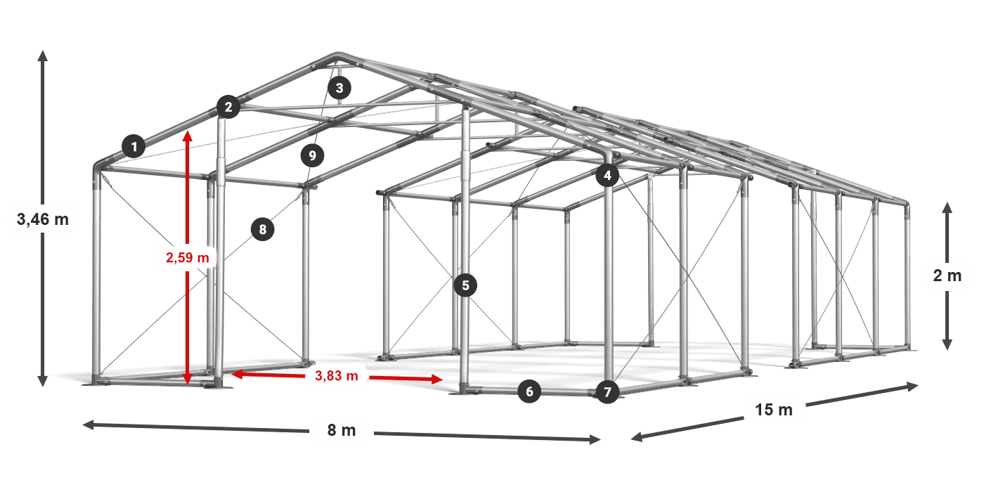 Plarka vybavenovaná oknami vitráže a priehľadnou strechou zaisťuje optimálne osvetlenie stolov a bufetov počas večierkov v večierku. Silné opláštenie s PVC chráni pred vlhkosťou, vetrom a UV žiarením. V prípade stanu môžete organizovať rodinné oslavy, bankety spoločnosti, festivaly a výstavy. Je to tiež vynikajúci záhradný stan a komerčný stan. Oplachovanie bolo vybavené systémom ľahkej zmeny dĺžky Multi-size.