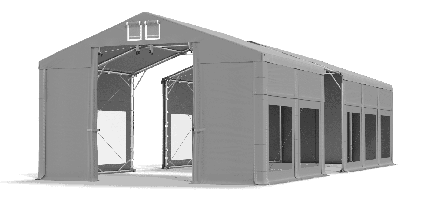 Oplachovanie vybavené priehľadnými stranami je vyrobené z PVC s vysokou hmotnosťou. Plarka je vodotesná a odolná voči UV žiareniu, a preto pri organizovaní rodinných podujatí a obchodných večierkov zaručuje suchý a tienistý priestor. Priehľadné bočné steny poskytujú perfektné osvetlenie stolov a bufetov. Je to tiež vynikajúci komerčný stan a altánok stanu. Plarpaulín má systém rýchlej zmeny dĺžky Multi-size.