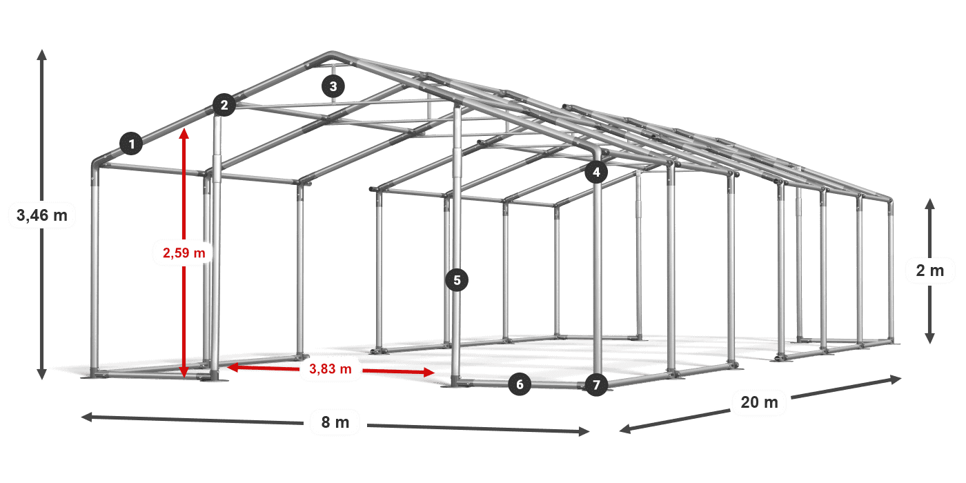 Stan 8m x20m 2m pozostáva zo stanov s rozmermi: 8x12m, 8x8m.