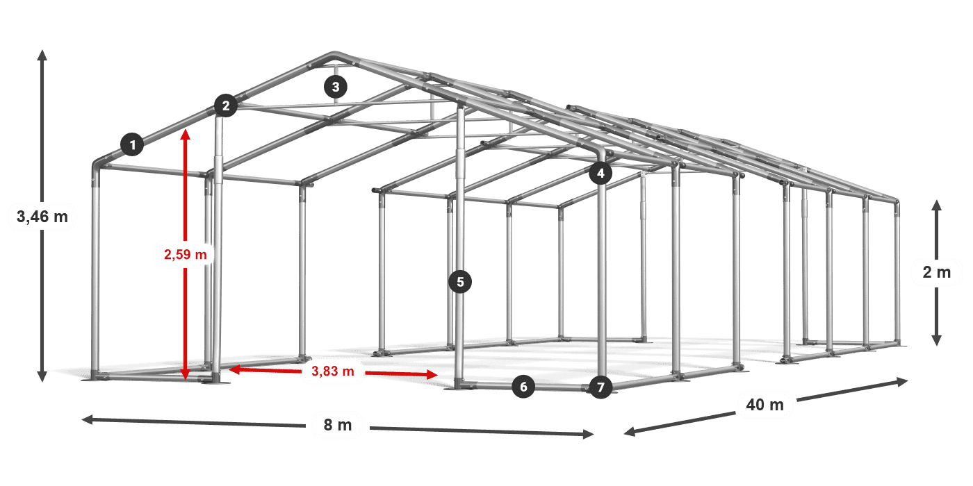 Stan 8m x40m 2m pozostáva zo stanov s rozmermi: 8x12m, 8x8m.